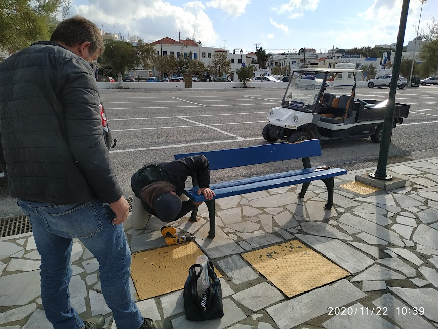 Επισκευή και βάψιμο ολων των παγκακιων στο λιμάνι